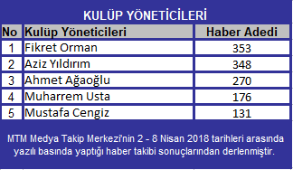 Spor gündeminin enlerinin belirlendiği MTM araştırmasına göre 04-10 Eylül tarihleri arasında Beşiktaş 1.792 habere konu olurken, Siyah-Beyazlıları 1.711 haberle Fenerbahçe ve 1.577 haberle Galatasaray takip ediyor.