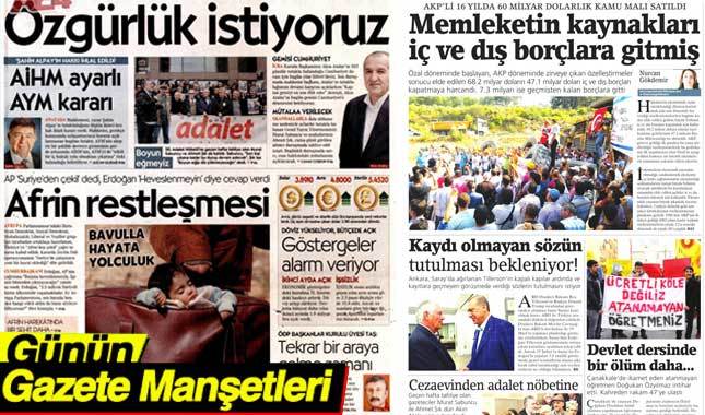 17 Mart 2018 Gazete Manşetleri