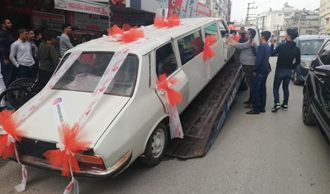 Tüm imkansızlıklara rağmen 3 günde limuzin görünümüne kavuşan Renault 12 Toros marka otomobil düğün günü gelin arabası olarak itinayla süslendi. Ancak otomobilin trafiğe çıkmasına izin verilmeyince çekici çağrılarak gelin arabası olarak süslenen Toros limuzin çekiciye yüklendi. Çekiciye yüklenen otomobil düğünün yapılacağı alana getirildi.