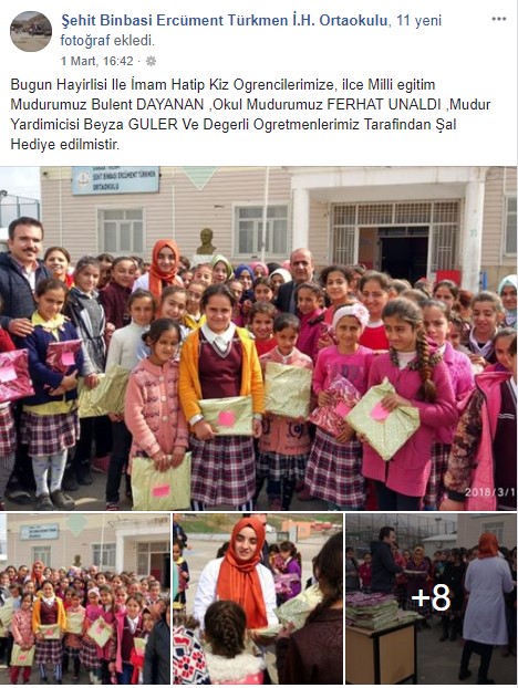 İlçe Milli Eğitim Müdürü'nün İmam Hatip Ortaokulu'nda kız çocuklarına türban dağıttığı görüntüler tartışma yarattı. Türban hediye edilen kız çocuklarının ertesi gün okula türbanla geldikleri görüldü.
